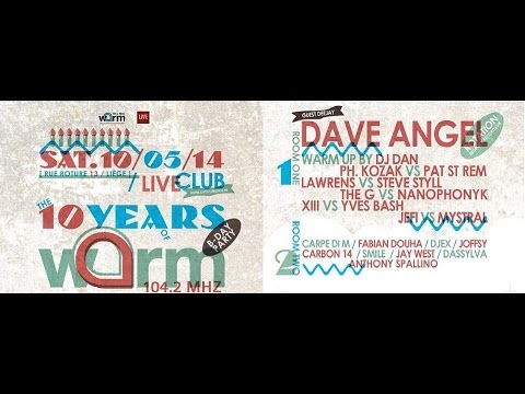 Pour ce qui est de l’affiche, signalons la présence d’une pointure de niveau internationale avec Dave Angel, une des légendes de la musique électro anglaise. Attendez vous à de la bonne tech’. Le reste du line up est composé en majorité par nombre de personnes qui ont fait de Warm FM ce qu’elle est aujourd’hui: Dj Dan, Philippe Kozak, Nanophonyk, Carpe Di M, Smile, Carbon 14, Pat St Rem, Dassylva et beaucoup beaucoup d’autres! Il y aura en effet pas moins de 21 Djs sur l’ensemble de la soirée! Et deux salles ouvertes pour l’occasion.